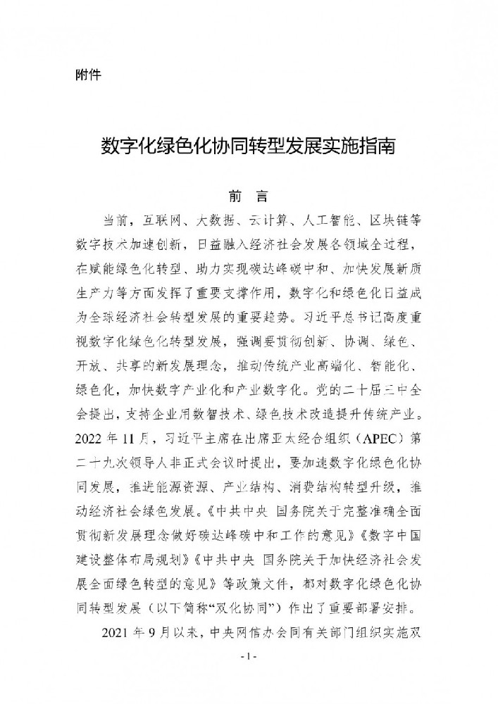 關于印發《數字化綠色化協同轉型發展實施指南》的通知