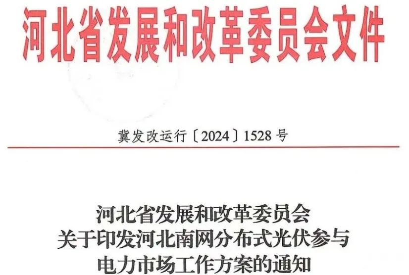 11月19日,河北省發(fā)改委印發(fā)關(guān)于《河北南網(wǎng)分布式光伏參與電力市場工作方案》的通知。通知明確,以2030年新能源上網(wǎng)電量全面參與市場交易為目標(biāo),遵循“先增量后存量、先商用后戶用、先試點(diǎn)后推廣”的原則有序、分類地推動(dòng)分布式光伏入市,最終實(shí)現(xiàn)與集中式新能源的入市電量比例相同,逐步引導(dǎo)分布式光伏合理承擔(dān)系統(tǒng)調(diào)峰、調(diào)頻等消納成本。