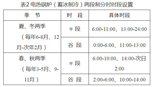 工商業用戶中除工業用戶以外的電熱鍋爐(蓄冰制冷)用電,執行兩段制電價,具體時段劃分見表2。