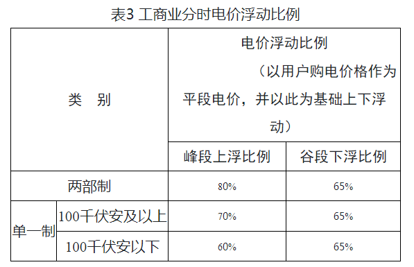為有效銜接電力市場交易,將工商業用戶分時電價計價基礎,調整為以工商業用戶購電價格為基礎,并優化峰谷浮動比例,具體浮動比例見表3。