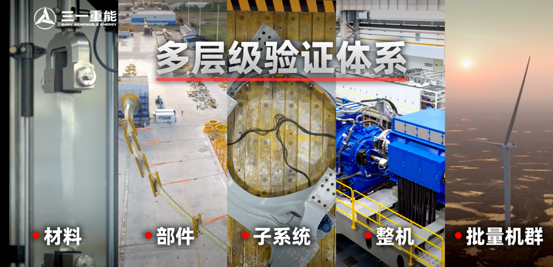 為保障機組長達20年服役生涯中的可靠性,三一重能自建四大風電試驗基地,建立起涵蓋風機材料、部件、子系統、整機及批量機群的全方位驗證體系,依靠嚴苛的試驗標準,將風場驗證前移,充分論證部件與整機可靠性,鍛造風機“強健體魄”。