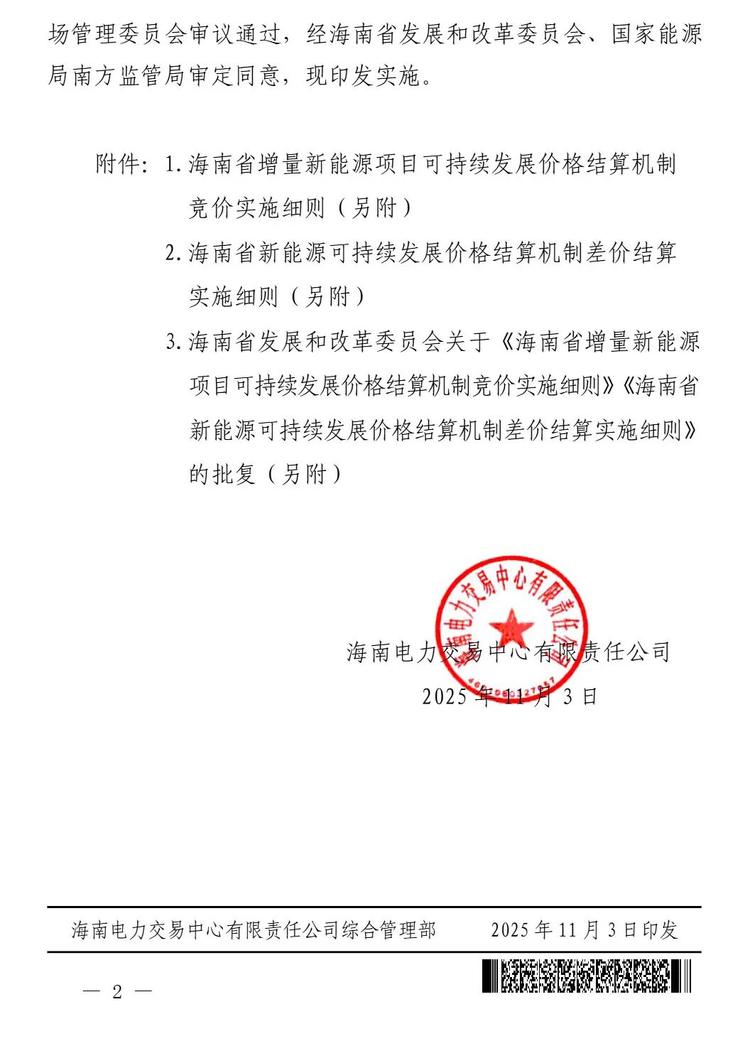 11月3日,海南電力交易中心印發海南省新能源上網電價市場化改革配套細則的通知,實施細則提到,適用于2025年6月1日及以后投產的且未納入機制執行范圍的新能源項目(風電、太陽能發電項目,下同)。