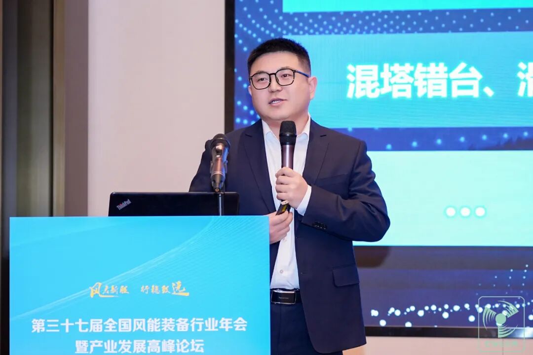 在“風力發電機組技術論壇”上,三一重能解決方案中心副部長吳寶鑫發表了題為《大型化背景下的風資源精細化評估及機組選型》的主題宣講。